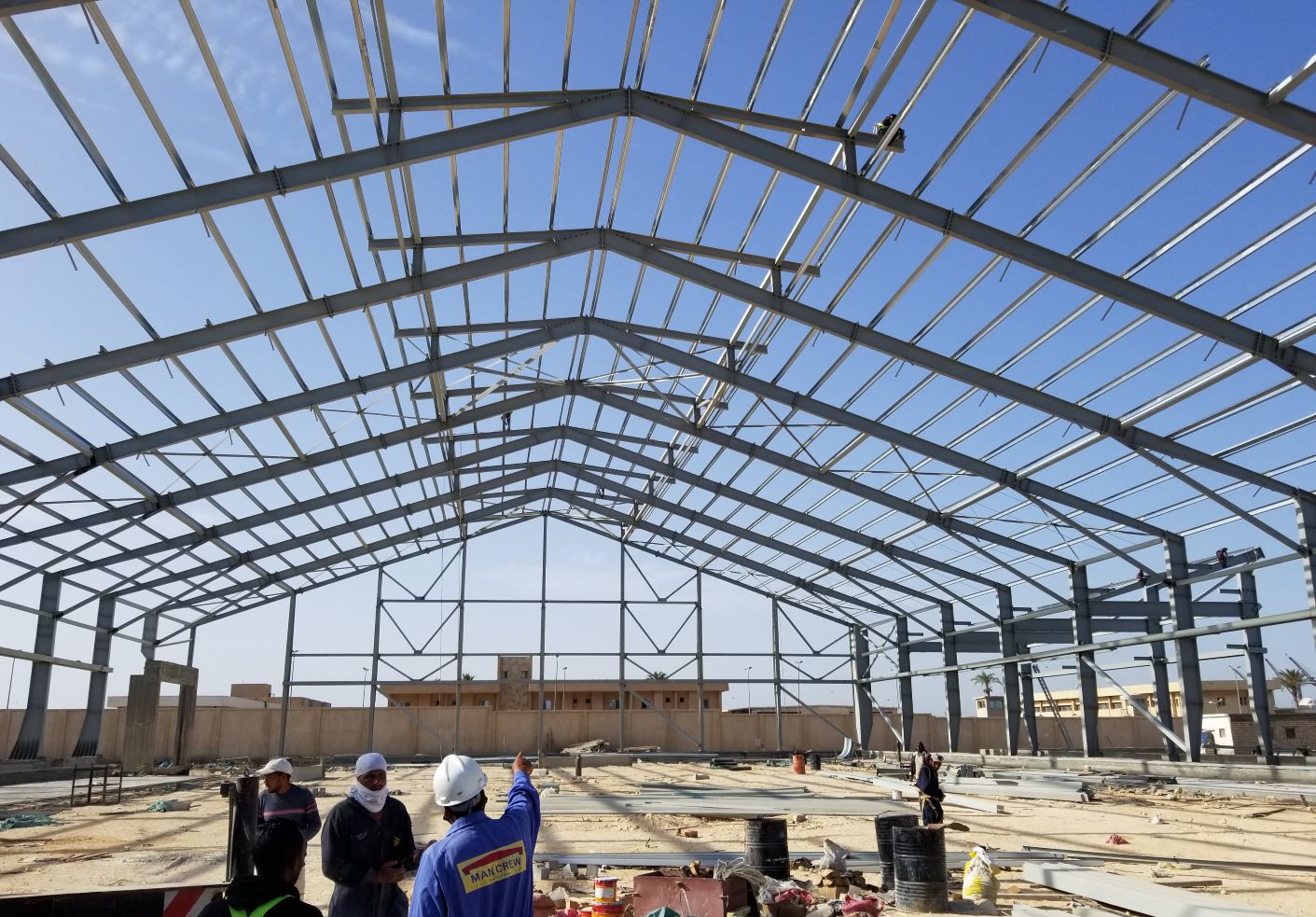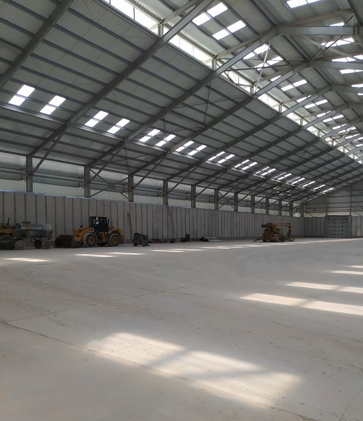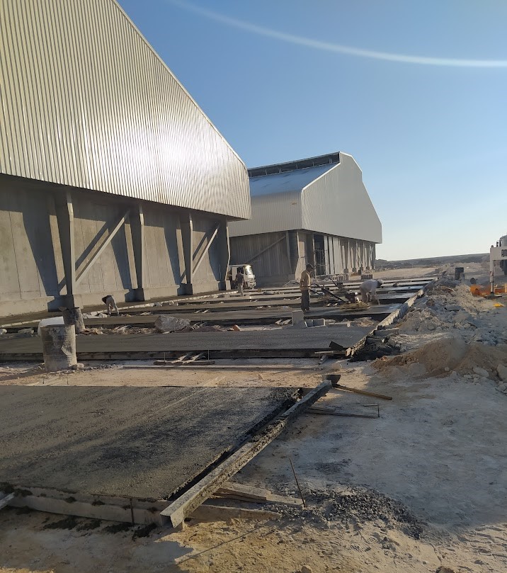 The project involves the construction of three large feed stores, each featuring a steel structure with a free span of up to 65 meters.